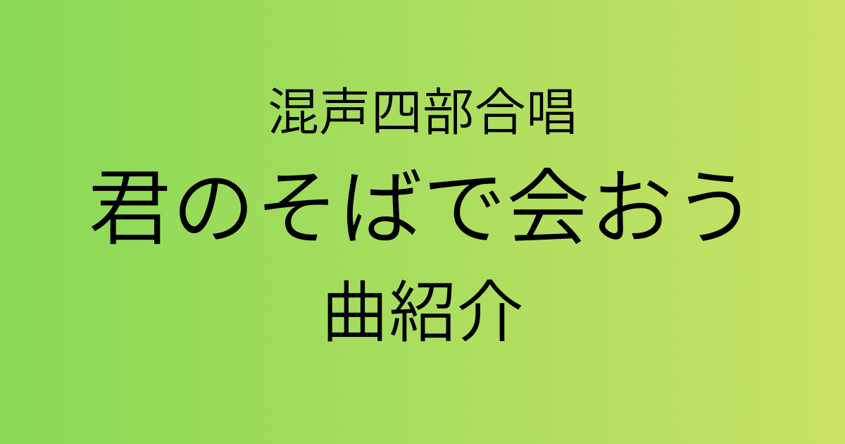 こんにちは!今回は混声合唱曲 「君のそばで会おう」 の紹介をしていきます。